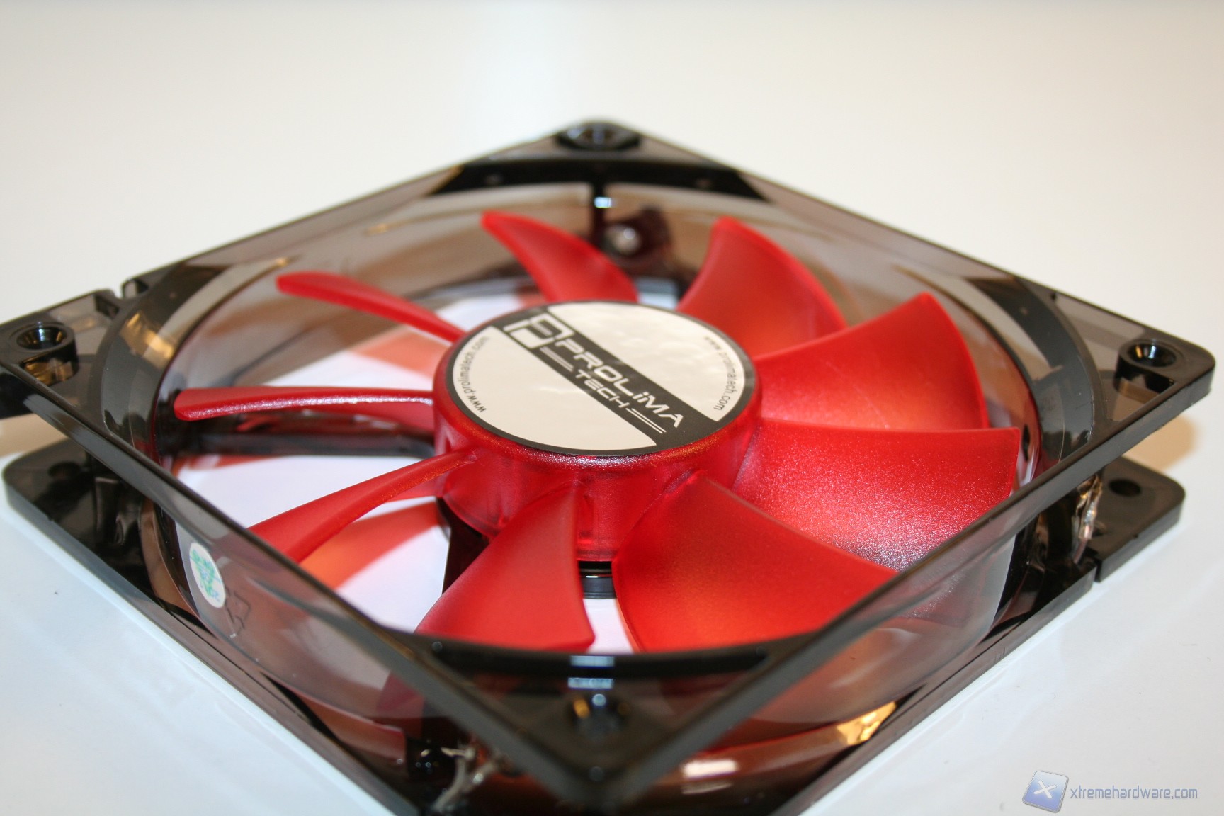 Come già fatto presente Prolimatech non fornisce nessuna ventola in dotazione; abbiamo utilizzato un modello molto particolare, la Prolimatech Aluminum da 140mm, oltre a due Prolimatech Bluevortex da 120mm LED rossi e blu! Riportiamo i dati effettivi di rotazione, ricordiamo inoltre che sono sensibili ad una variazione del 10%.