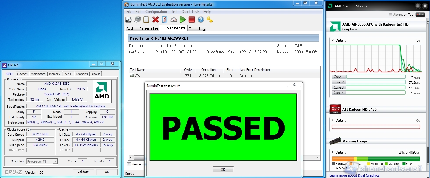 After these tests we changed the monitor and we tried again to overclock the CPU and GPU at the same time. The result was positive, in fact we found no more the problem of video malfunction, probably due to interference due to overclocking the other monitor was unable to filter.