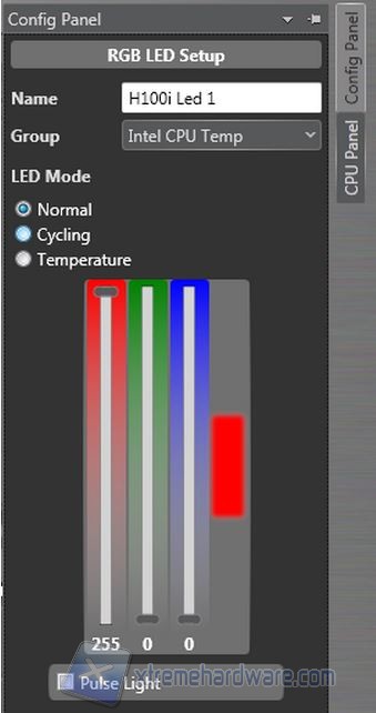 Qui potete osservare che è possibile fissare le opzioni lateralmente tramite la grappetta virtuale in alto a destra. E’ notevole il fatto che è possibile far spegnere il PC qualora fosse raggiunta una temperatura elevata, come mandare una E-mail o settare le ventole al 100%. Il Lightning Node permette anche di attivare i LED posizionati nello chassis, sempre con una termoregolazione fino a 70 gradi centigradi. Potrete scegliere il colore da assegnare ai LED, e mostrare ad esempio un bel rosso acceso nel caso in cui il PC sta per andare in fiamme!