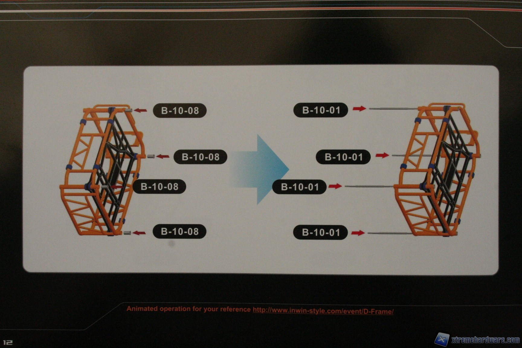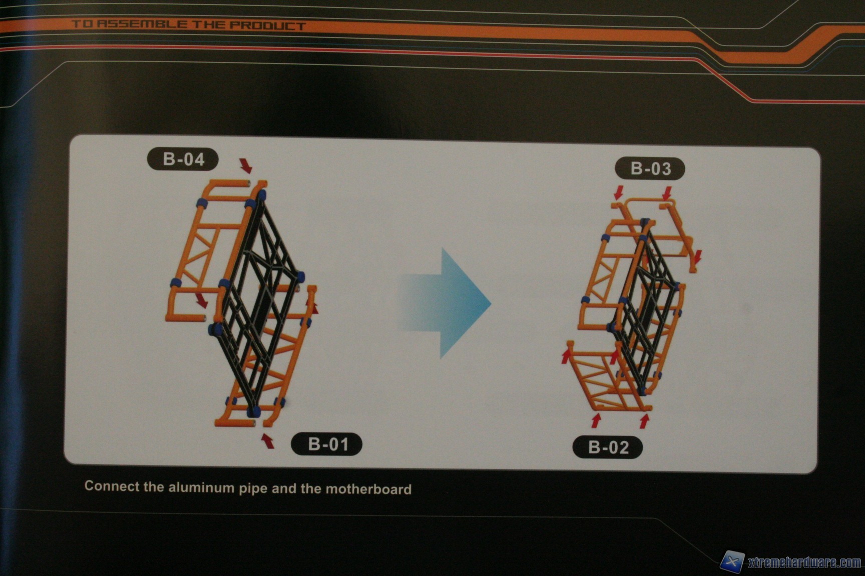 - - Fatto questo il telaio è pronto, ora rimane fissare il cage per gli hard disk (B-05), il plate posteriore per la periferica da 5.25” (C-01), i fermi passacavi (B-10-09), il meccanismo di blocco delle periferiche PCI (B-08) ed infine i quattro supporti per ventole da 120mm (B-07), grazie alle viti in dotazione (B-10-06).
