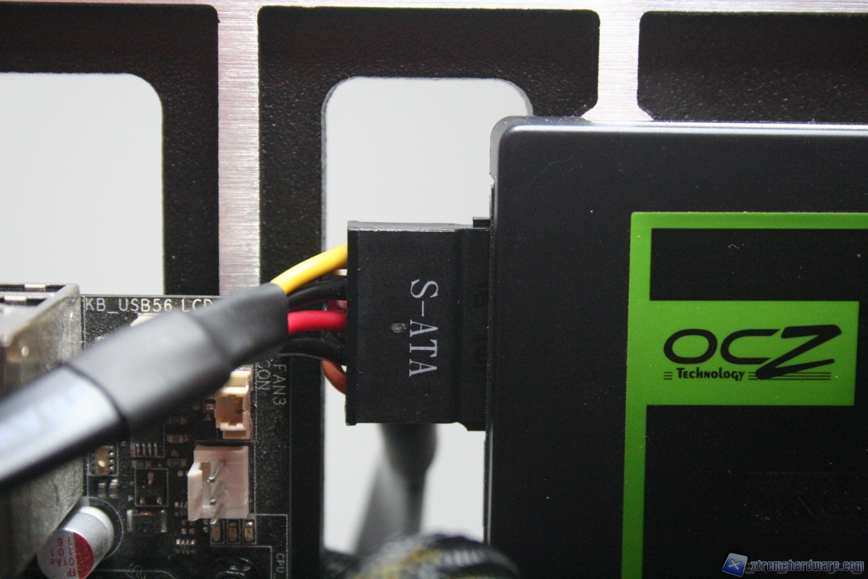 Ora analizzeremo velocemente il montaggio di un sistema Intel, ed il conseguente cablaggio posteriore ed anteriore. Anche per gli utenti poco esperti la procedura è molto facile: per prima cosa dovrete montare l’alimentatore al lato sinistro del cabinet, facendo attenzione a passare il connettore di alimentazione supplementare della scheda madre, da 4/8 pin direttamente dietro il plate della mobo, se il connettore non è molto lungo o se non siete in possesso di prolunghe di alimentazione. Date le dimensioni ridotte, difficilmente saranno necessarie delle prolunghe per il connettore della scheda madre 24 pin, anche se forse per quello da 4+4pin EPS 12V sarebbe opportuno utilizzane una (ne consigliamo sempre l’adozione). Fatto questo consigliamo l’installazione dei dischi rigidi ed anche già il cablaggio dei connettori di alimentazione e interconnessione, facendo attenzione a posizionarli in serie nei cage predisposti a scorrimento. Abbiamo avuto un problema con il posizionamento degli SSD in quanto c’è una bassissima tolleranza laterale tra lo slot di inserimento del connettore SATA dati ed alimentazione, quindi è consigliato l’utilizzo di cavi piatti: