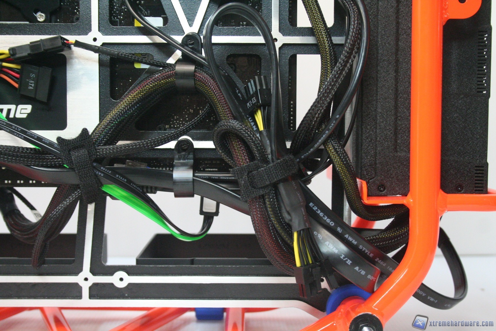 Il cablaggio posteriore è ottimo, come quello anteriore e lo spessore posteriore, che si attesta a 68mm. Il cablaggio posteriore richiederà qualche accortezza e consigliamo di fare molta attenzione durante l’installazione dell’SSD, per via delle ristrette tolleranze in prossimità di queste unità. Abbiamo utilizzato connettori SATA, alimentazione e dati, piatti, quindi vi invitiamo a fare lo stesso. Dato che abbiamo utilizzato una scheda madre E-ATX è stato comunque possibile far passare i cavi nelle apposite fessure. C’è stato anche un problema relativo ad una vite toolless della PSU, ma è possibile che sia stata colpa del sottoscritto.