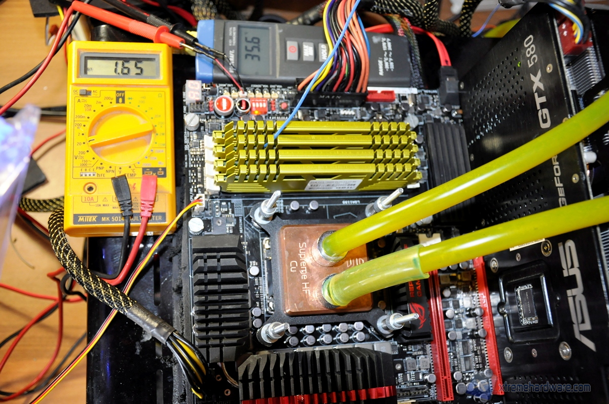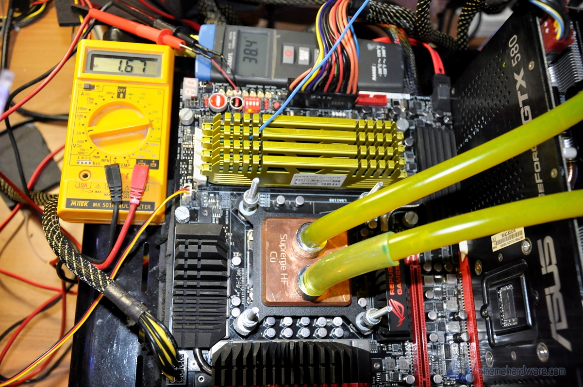 Su RAMPAGE V EXTREME con una temperatura ambiente di 32,3° ed un undervolt di 0,4v, abbiamo misurato con termometro digitale della VOLTCRAFT K101 una temperatura di lavoro di 34°.