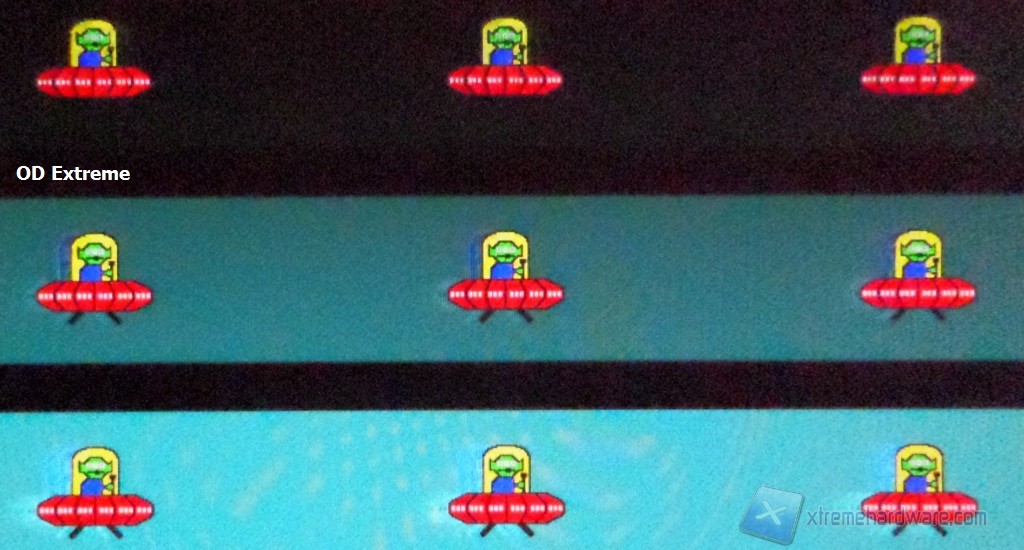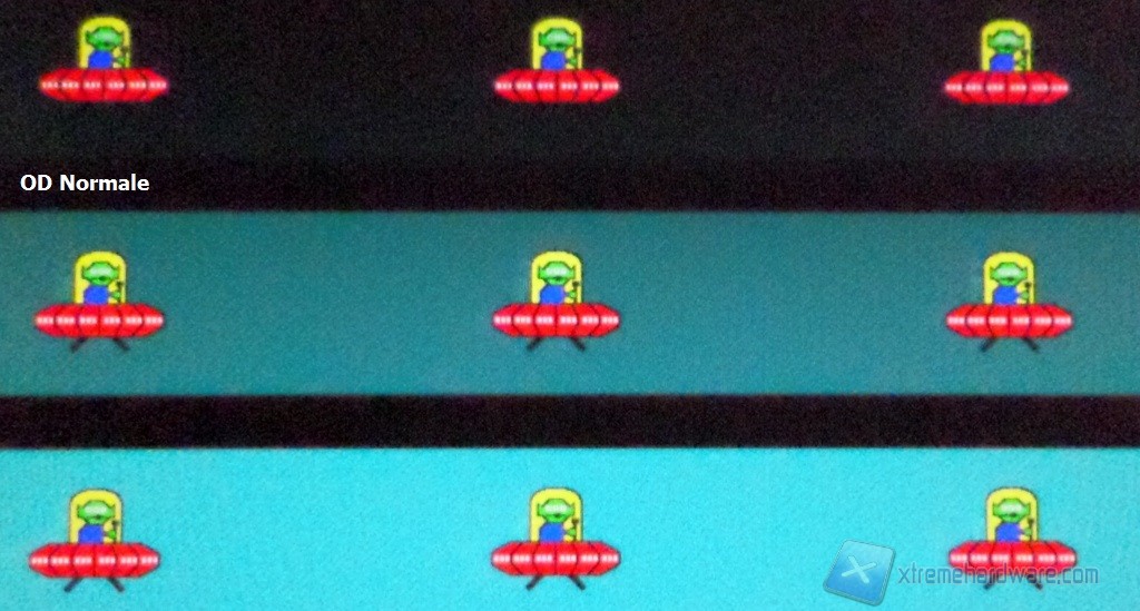 Partiamo da un presupposto: l'ASUS PG278Q non è mai lento. Con l'overdrive disattivato è comunque piuttosto veloce e la media dei risultati è soddisfacente, anche se il risultato peggiore potrebbe far pensare diversamente. L'impostazione Extreme mostra invece il reverse ghost in più di qualche occasione, manifestando un setting spinto. La via di mezzo, Normale, risulta l'opzione consigliata, dato che l'effetto ghost non è marcato e il reverse ghost è davvero molto raro. Il vero vincitore in questo test è però l'Ultra Low Motion Blur che restituisce un'immagine quasi sempre priva di effetto ghost; i dieci risultati sono stati praticamente tutti uguali, senza considerare il fatto che in più di qualche occasione abbiamo fotografato il frame completamente nero. Nel test dell'ufo, la differenza con gli altri setting è netta, soprattutto per la definizione dell'oggetto in movimento più che nell'effetto scia, ma è riscontrabile più che altro di persona.