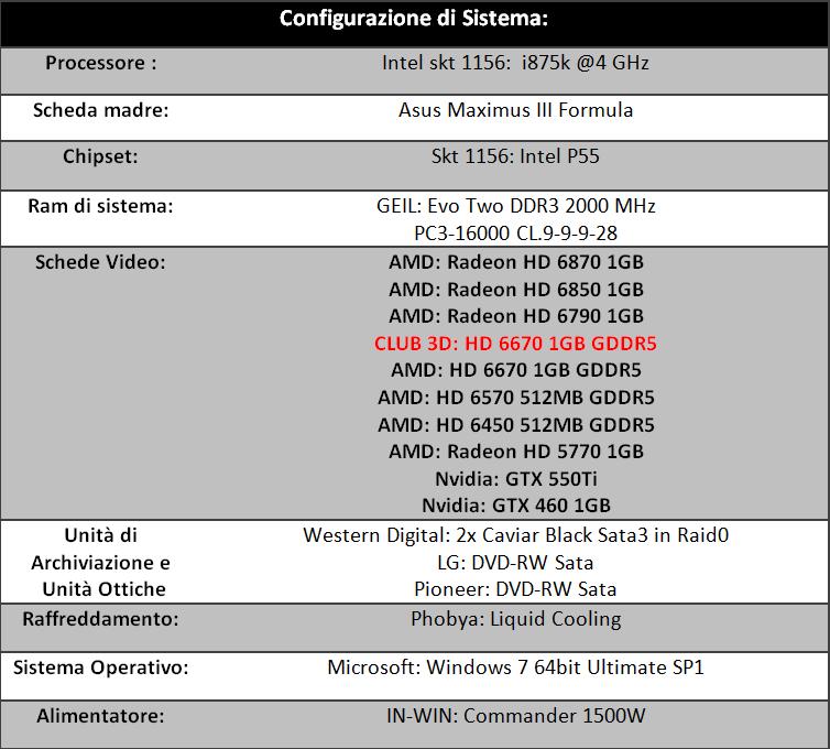 Abbiamo testato la scheda video  Club 3D HD 6670 1GB sul seguente sistema di prova:
